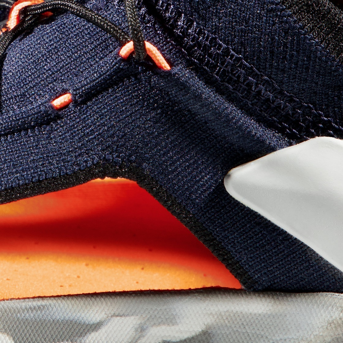 可折疊鞋跟 | 適合前腳較寬的便鞋,鞋面採用透氣的針織面料 | Base Fit 2.0: 由於自由滑動的雙層足跟環形護帶將力線分配在跟骨上下,此項專利技術的最新開發增強了腳跟支援性。由此帶來了更強的安全性、準確性,並減少起水泡的可能。