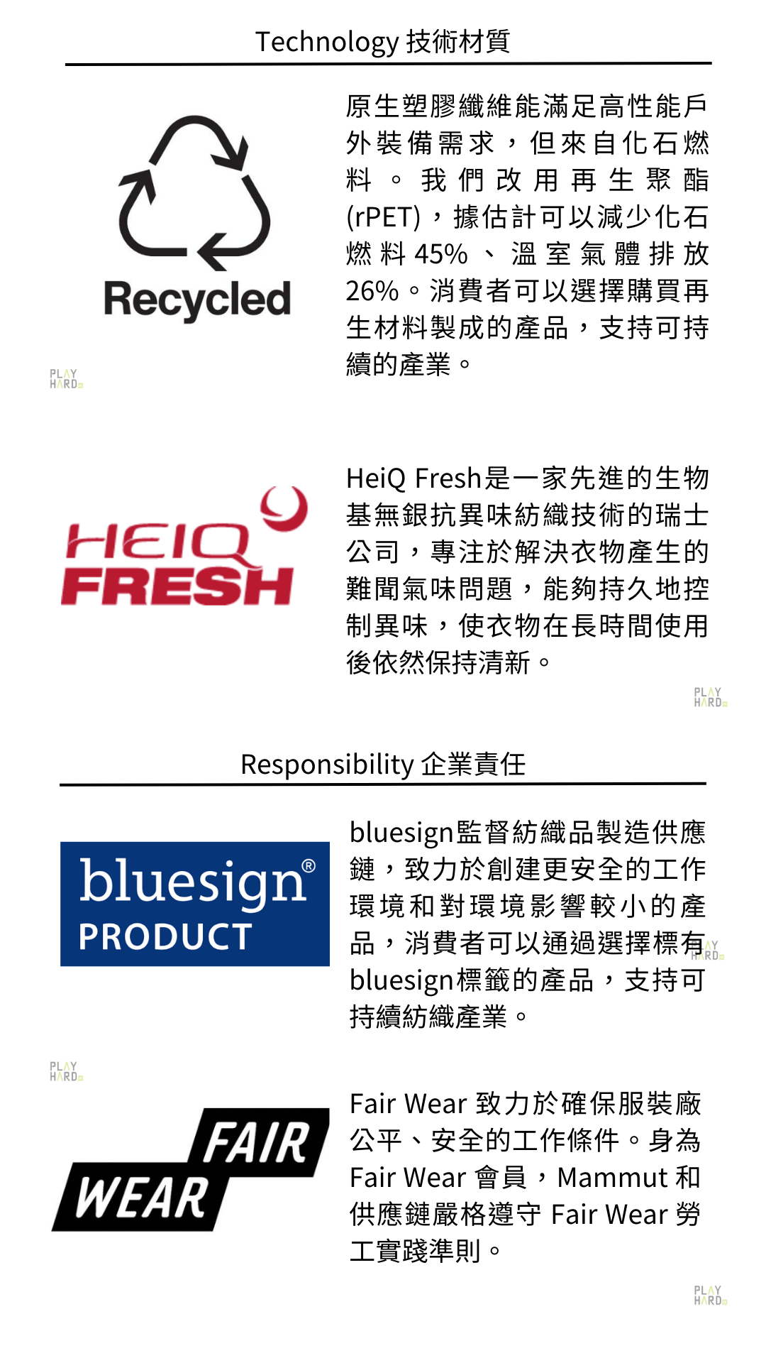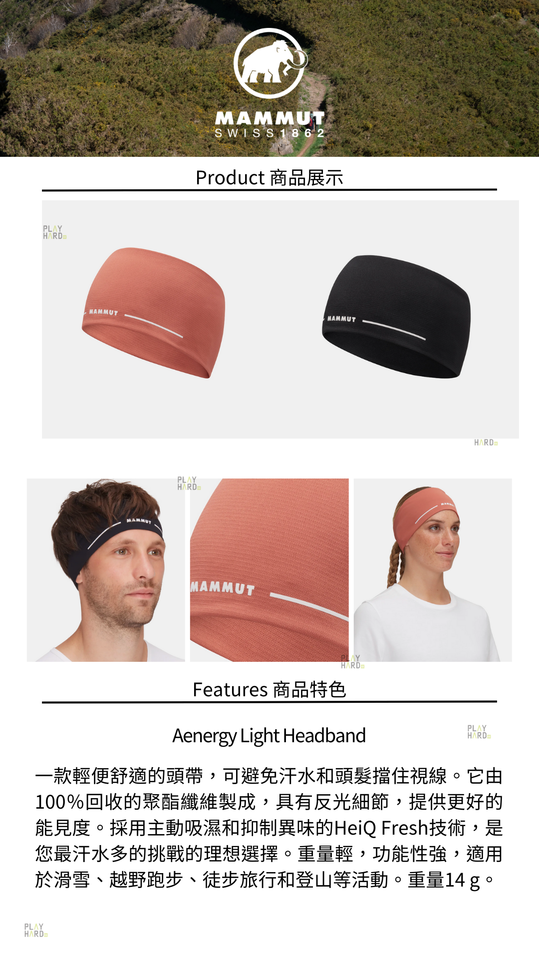 MAMMUT 頭帶/頭巾是一款輕便舒適的頭帶,可避免汗水和頭髮擋住視線。它由100%回收的聚酯纖維製成,具有反光細節,提供更好的能見度。採用主動吸濕和抑制異味的HeiQ Fresh技術,是您最汗水多的挑戰的理想選擇。