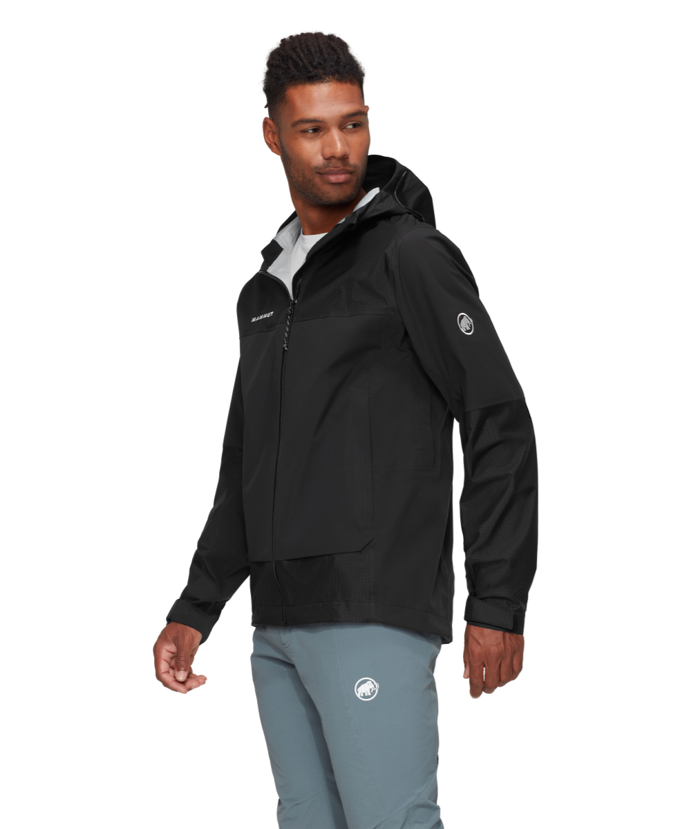 Ducan Guide HS 連帽夾克是一款輕量硬殼夾克,專為長途徒步和多日 trekking 設計,提供可靠的天氣保護。採用 3 層 Mammut DRY Tour 技術,具備高防水性和適當的透氣性,讓您全天保持舒適。全身使用回收面料製成,並配有耐磨撕裂布插片,以增強抗磨損性和環境保護。