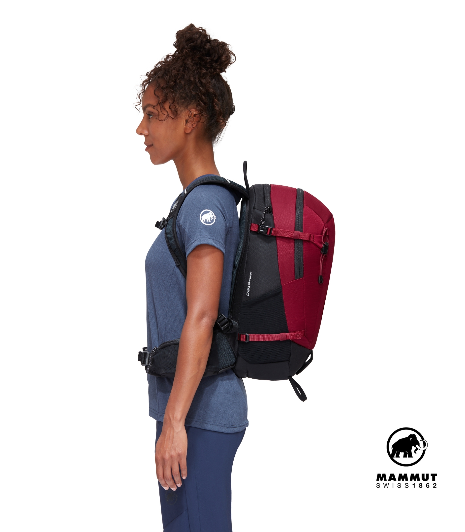 Lithium 20 Women 主要由可回收材料製成,並且持久的防水處理不含 PFC。攜帶系統和肩帶專為女性生理結構設計。非常輕便且透 氣的肩部襯墊可提升舒適感。