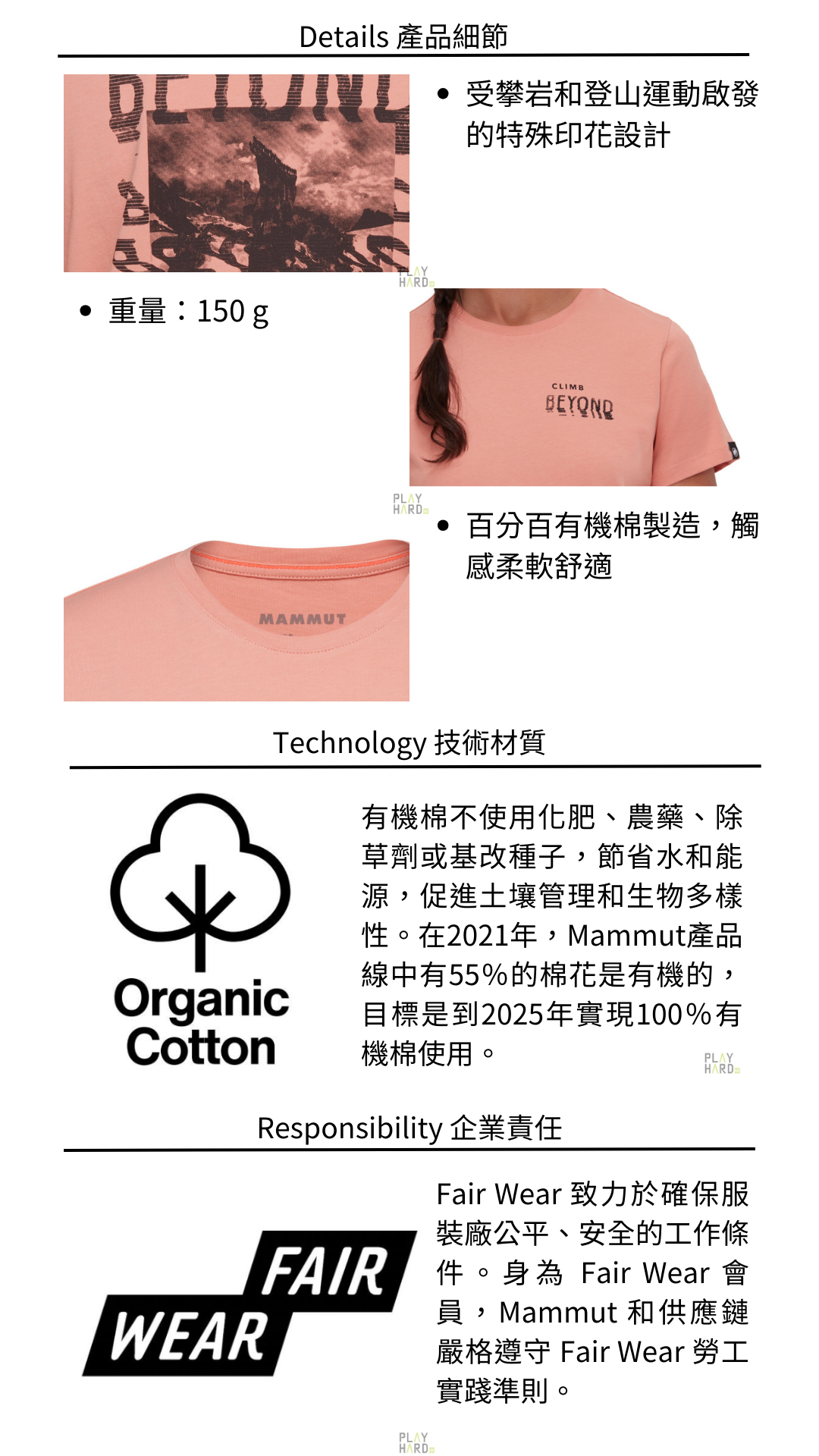 100%有機棉製成 休閒攀岩上衣