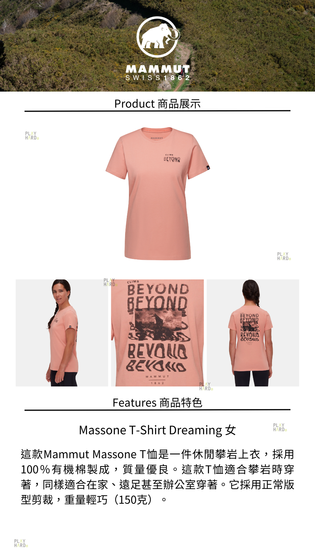這款Mammut Massone T恤是一款休閒攀岩上衣,使用100%有機棉製成。它有著Mammut一貫的高品質,適合在攀岩時穿著,同時也適合在家、徒步旅行或辦公室穿著。這款T恤經過環保認證,符合有機棉標準並通過Fair Wear認證。它具有正常版型,重量輕巧,只有150克。
