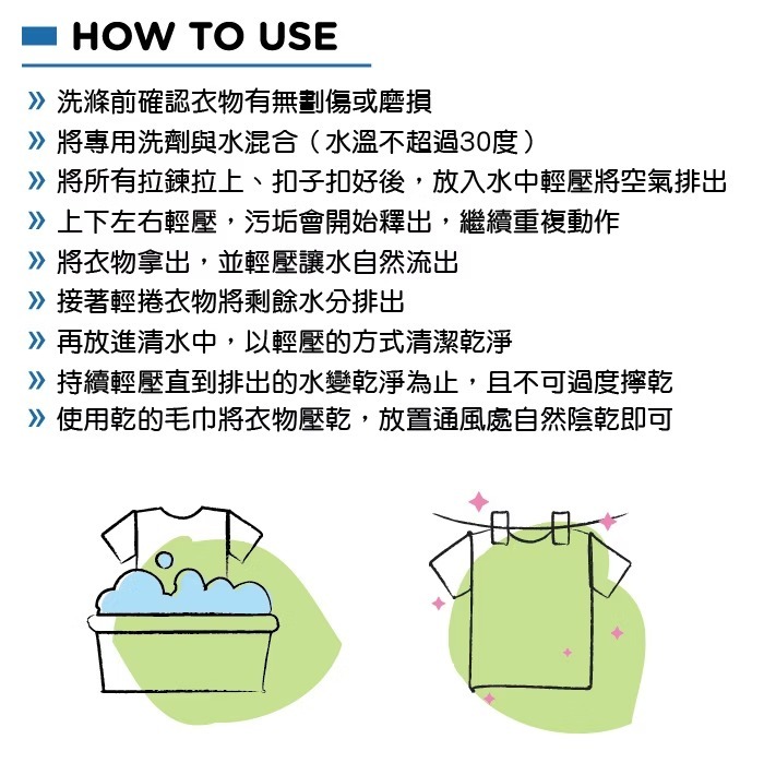 -徹底洗淨纖維及羽絨,不留化學殘餘物。